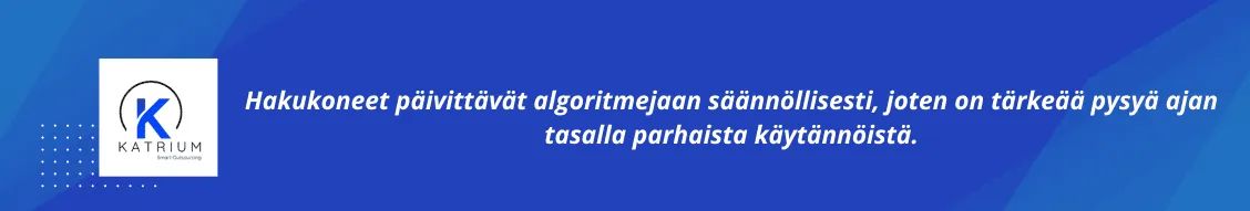Hakukoneet päivittävät algoritmejaan säännöllisesti, joten on tärkeää pysyä ajan tasalla parhaista käytännöistä. Uudet algoritmimuutokset voivat vaikuttaa sijoituksiiin, joten on tärkeää reagoida nopeasti ja optimoida sivusto vastaamaan uusia vaatimuksia.